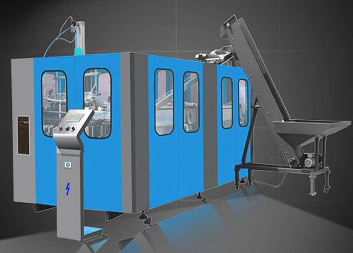 QuickStrech - PetBlow has a unique bottle clipper for online filling and bottle ejecting with a production capacity of 2000 to 6000 bottle /hr. It is equipped with electrical automatic preform loader & fully automatic touch screen Human Interface & PLC controlled unit for ease of operations.